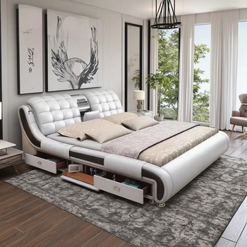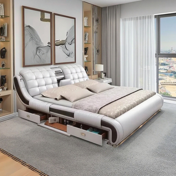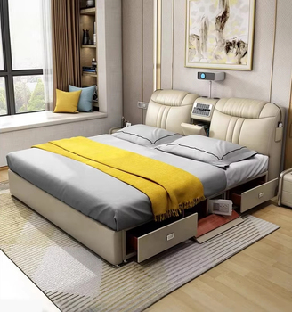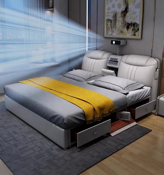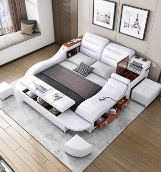 Modern yatak odası mobilyası masaj kral akıllı yatak deri çok fonksiyonlu akıllı yatak
