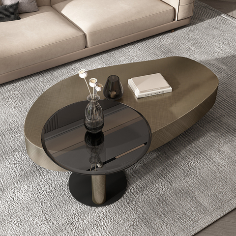 Sıcak satış şık Mango şekli Oval Tv standları sehpa seti ile siyah cam yan masa Modern merkezi tabloları ile çekmece